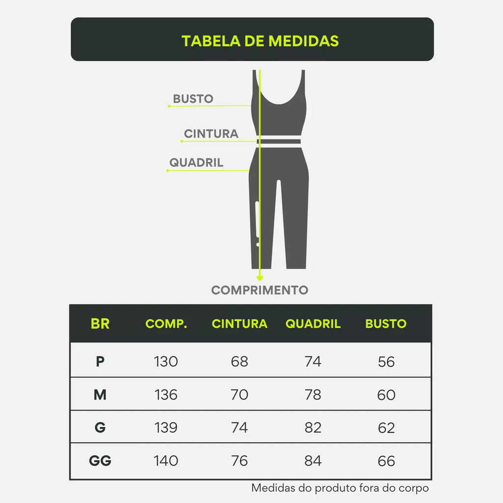 O Macacão Longo Fitness é a peça perfeita para quem busca conforto, estilo e segurança na hora do treino. Produzido em suplex premium de alta compressão, ele modela o corpo sem marcar e oferece zero transparência, garantindo total confiança em qualquer movimento.